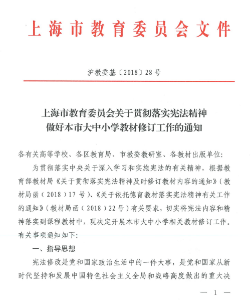 【教材】上海市教委关于贯彻落实先发精神做好本市大中小学教材修订工作的通知