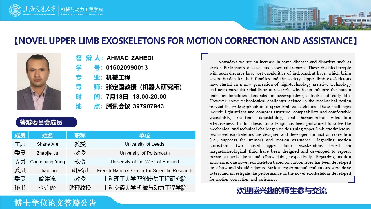 答辩人:AHMAD ZAHEDI| 导师:张定国 | 时间:7月18日 18:00 – 20:00 | 腾讯会议号:397907943