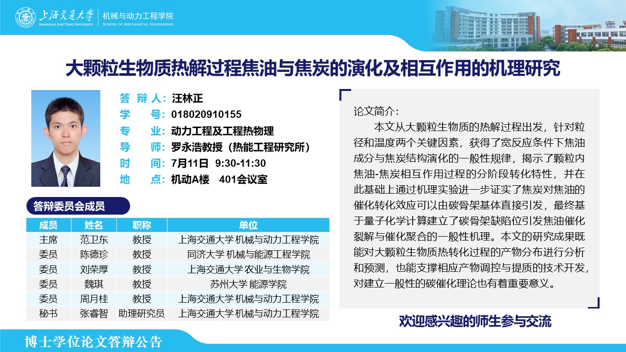 答辩人:汪林正| 导师:罗永浩 | 时间:7月11日 9:30 – 11:30 | 地点:机械A楼 401会议室