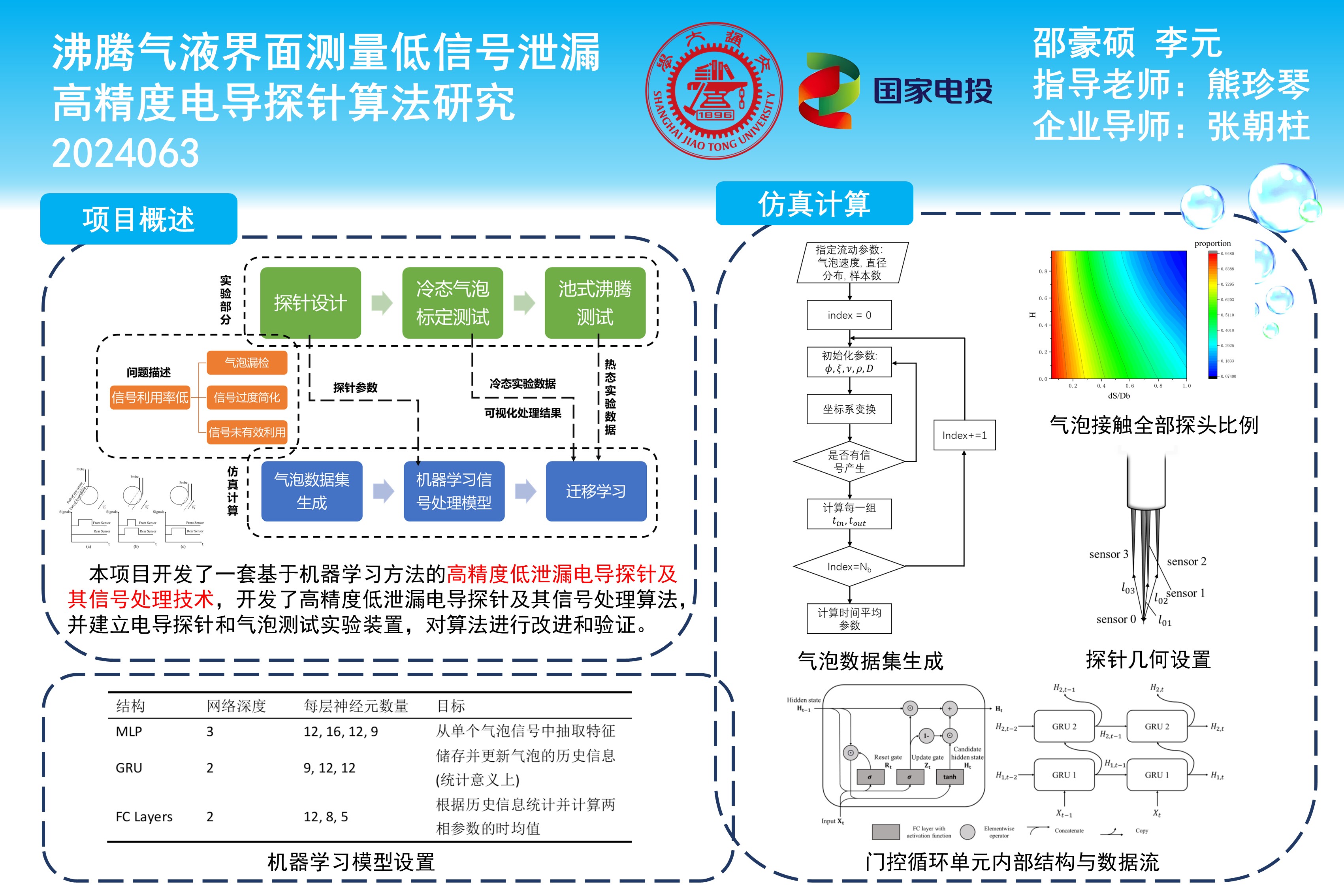 本项目已完成了物理模型建立,模拟程序开发,数据集制作以及机器学习方法训练,并完成了电导探针制作及气液沸腾界面电导探针测量系统的搭建及测试工作。在模拟数据中对机器学习方法和传统方法进行比较,结果表明,机器学习在减少采样要求和提高误差的收敛速度方面具有较为显著的优势。