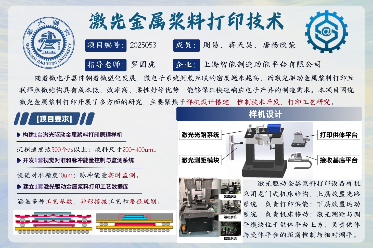 本项目围绕激光驱动金属浆料打印设备,获得了三个方面的成果: