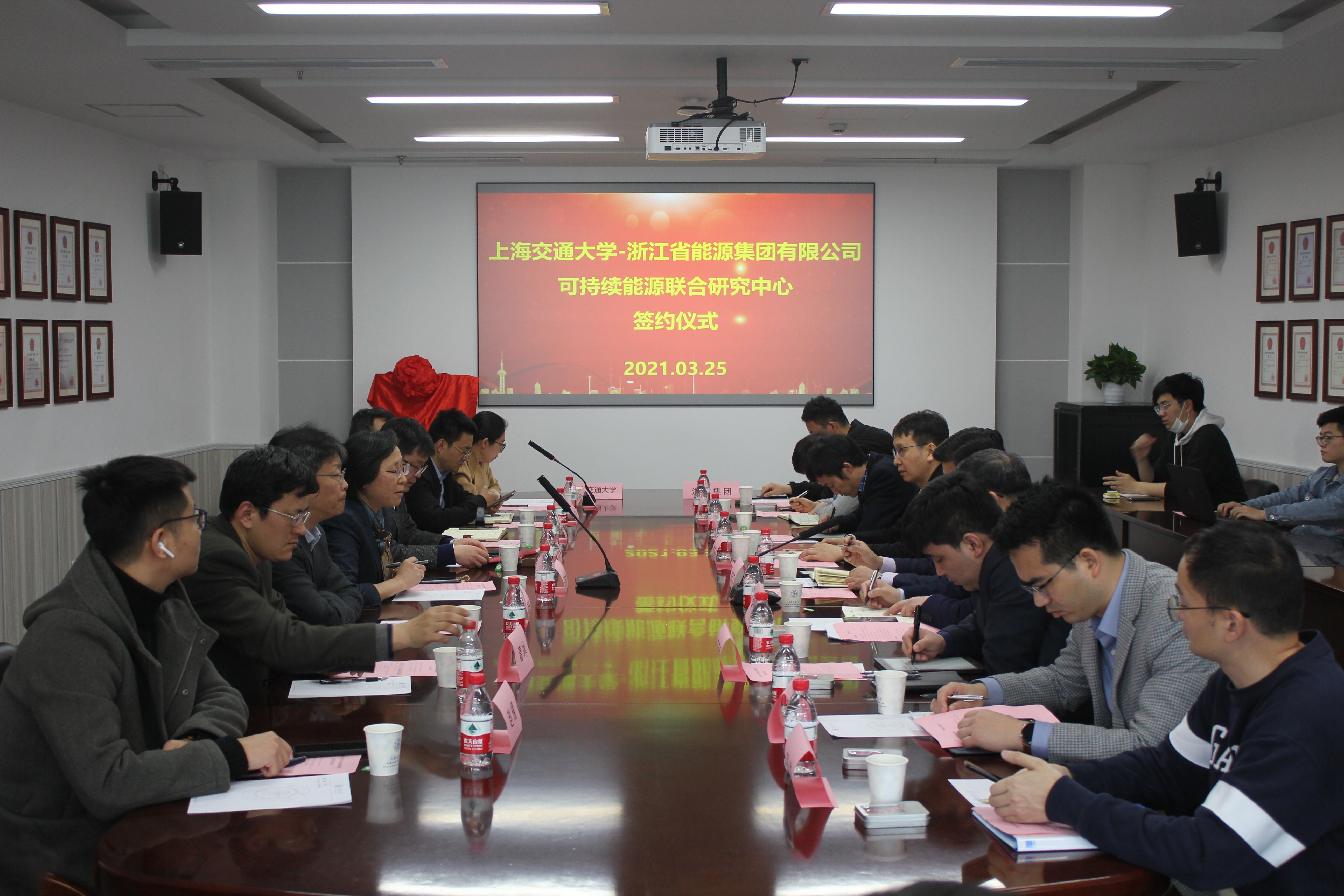 3月25日,上海交通大学-浙江省能源集团有限公司(以下简称:浙能集团)“可持续能源联合研究中心”成立及签约仪式举行。浙能集团总经理助理陶晓东,浙能技术研究院院长秦刚华、副院长范海东、副院长孙士恩,浙能集团科信部主管李清毅,上海交大副教务长吴静怡、hga010网页登录党委书记杜朝辉、动力与能源工程系主任代彦军等参加了签约仪式。仪式由制冷与低温工程研究所党支部书记葛天舒主持。