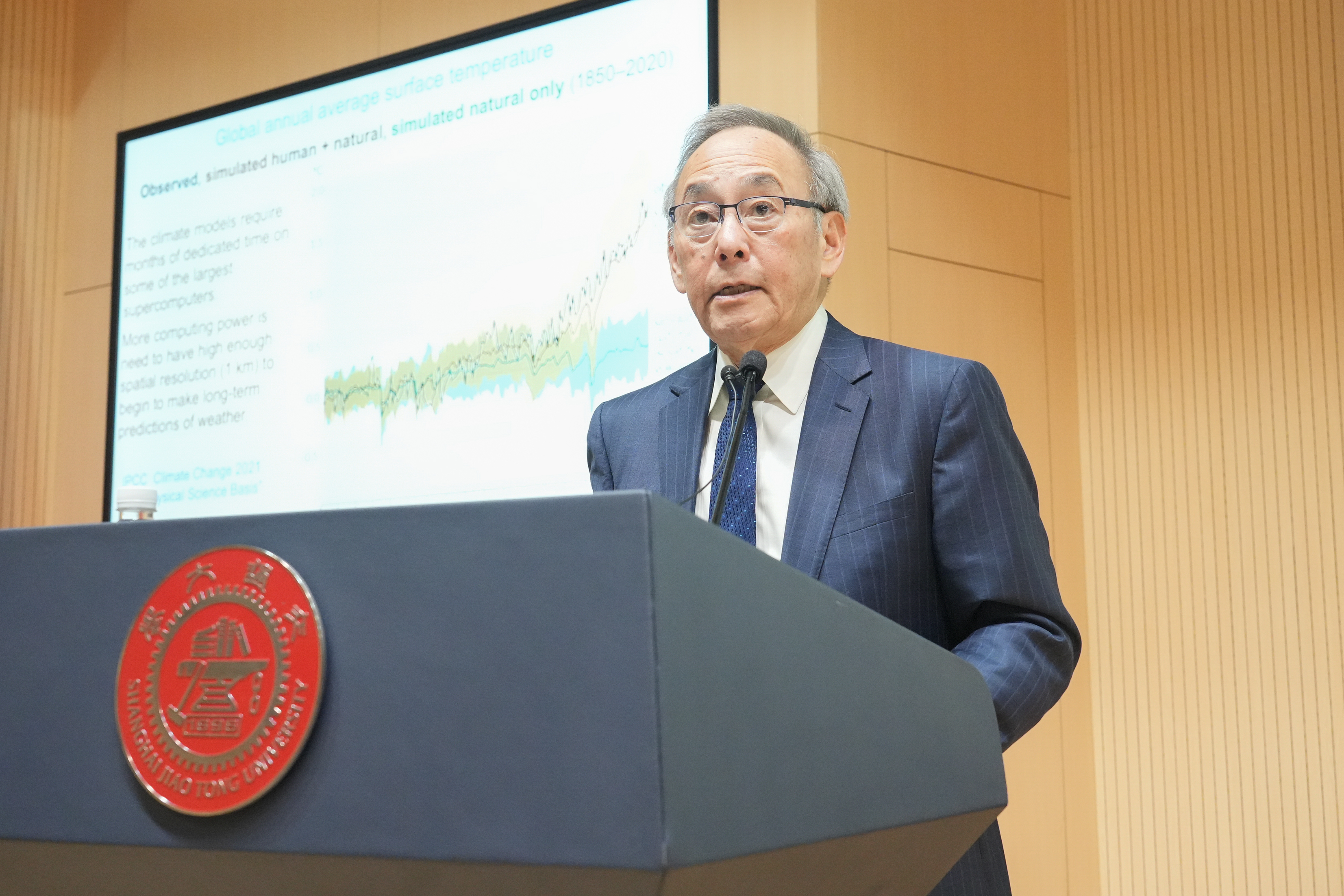 12月13日,美国前能源部长、1997年诺贝尔物理学奖获得者、斯坦福大学教授、中国科学院外籍院士Steven Chu(朱棣文)一行访问上海交通大学,并作为第207期上海交大“大师讲坛”嘉宾,以“Climate Change and Innovative Paths to a More Sustainable Future”为主题,在hga010网页登录作报告。上海交通大学校长、中国科学院院士丁奎岭会见了朱棣文。美中绿色能源促进会会长王麒,美国加州能源委员会原主席、美中绿色能源促进会高级顾问Robert Weisenmiller,美中绿色能源促进会副会长王云、周孟宁,美中绿色能源促进会信息技术总监张华以及学院200余名师生参加了讲坛。