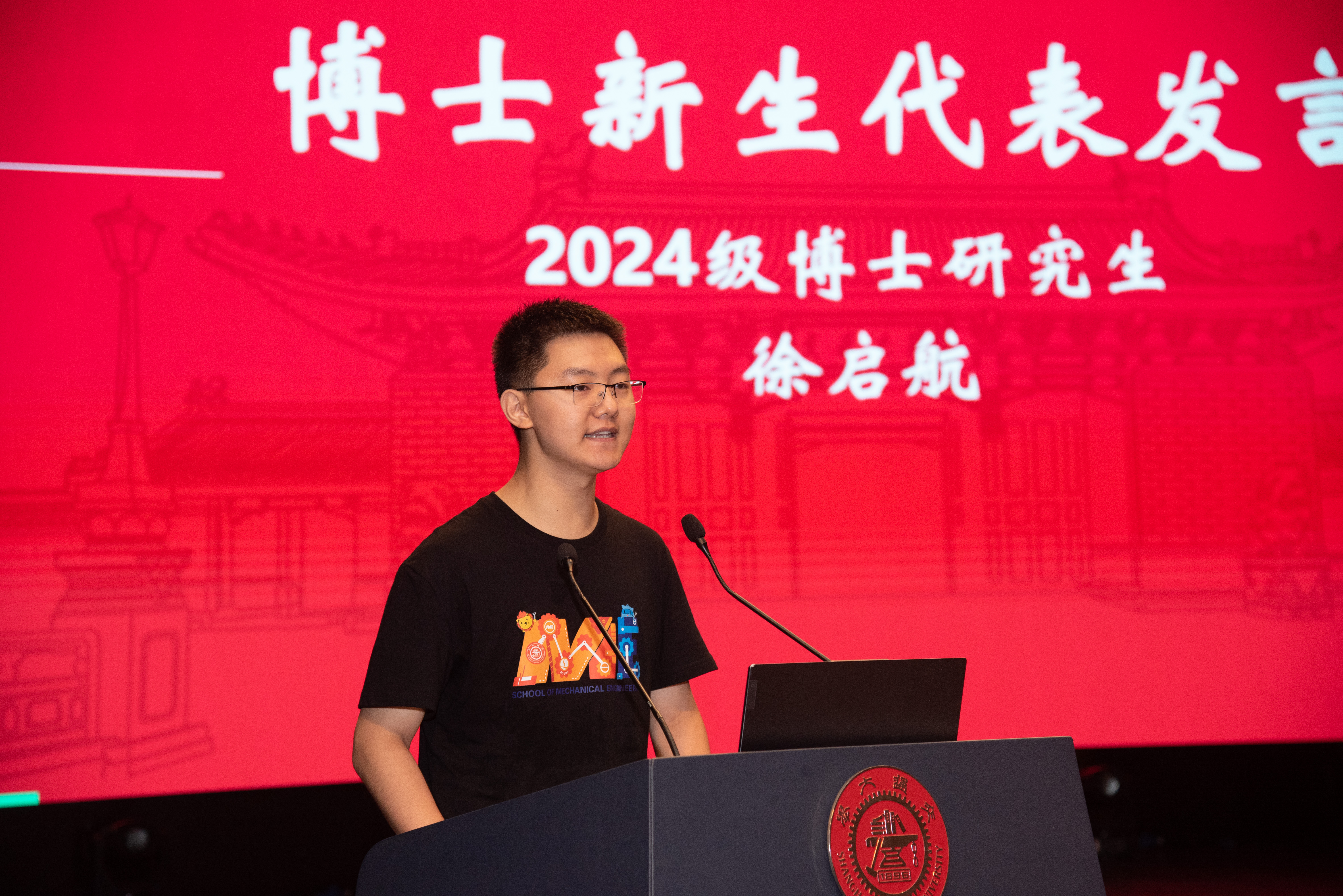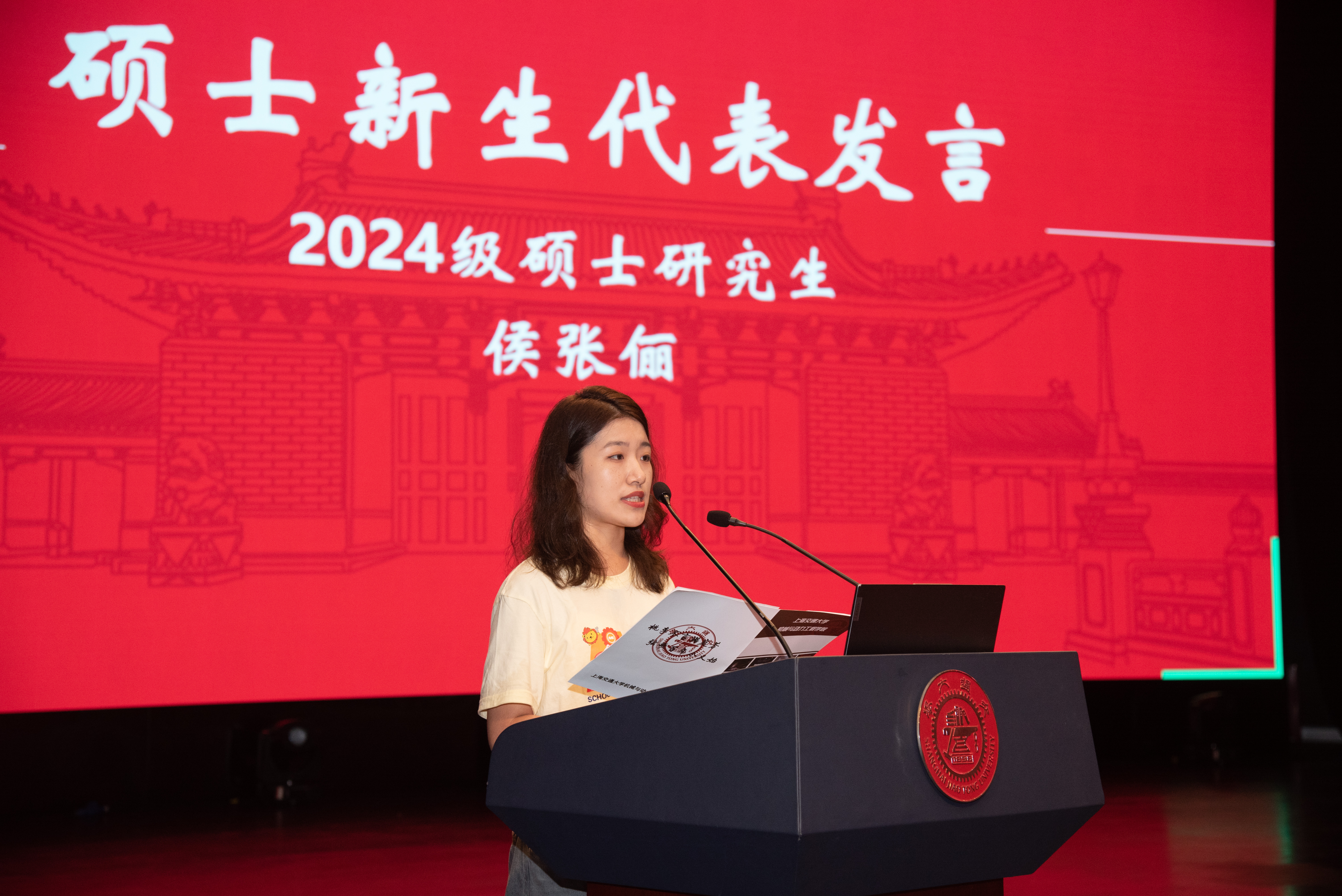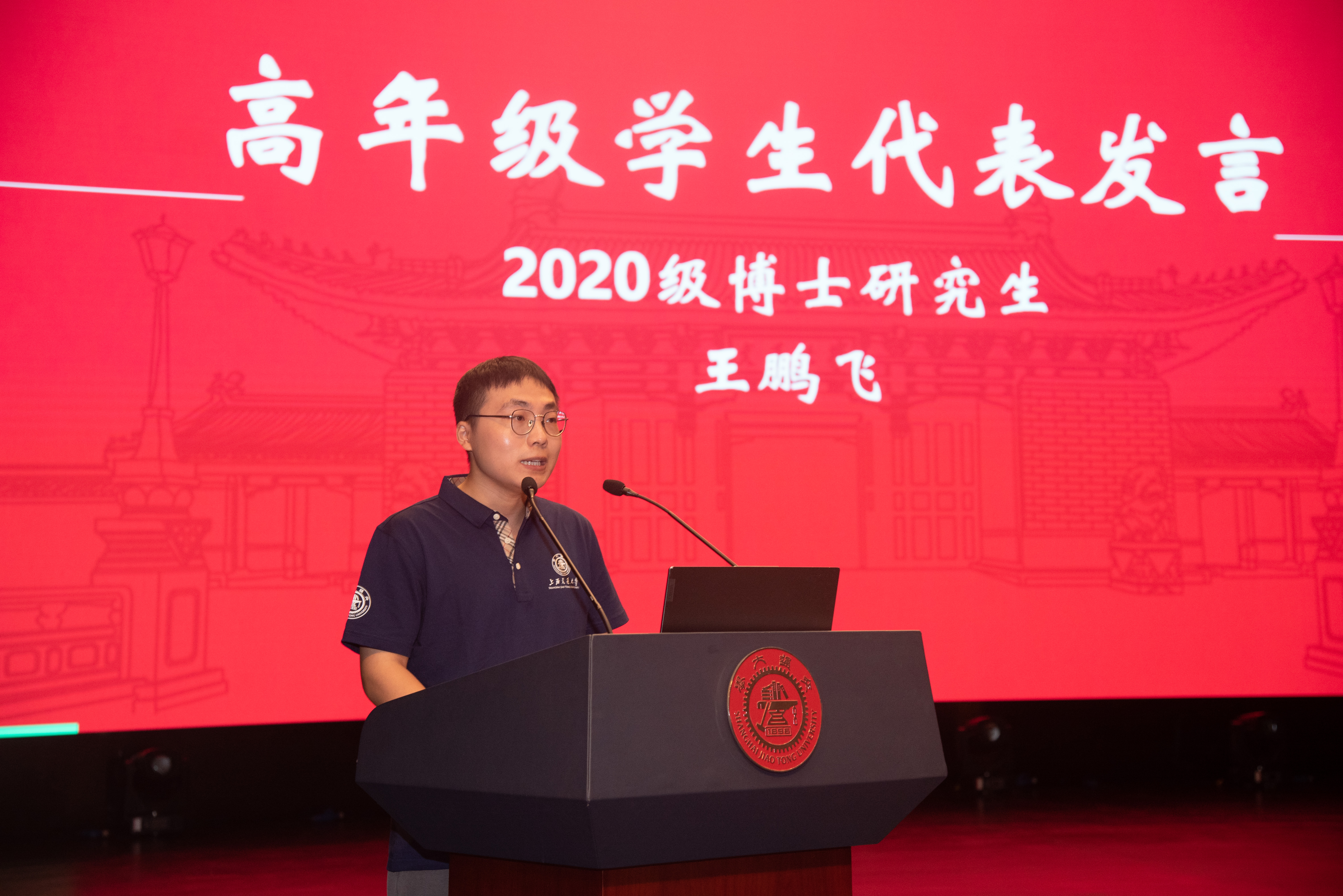 博士研究生国家奖学金获得者、2020级直博生王鹏飞结合自身经历,鼓励大家向难而行、迎难而上,敢于尝试、不断总结,积极交流、脚踏实地。2024级硕博连读生侯张俪、直博生徐启航作为新生代表,分享了对研究生生涯的思考与期待。