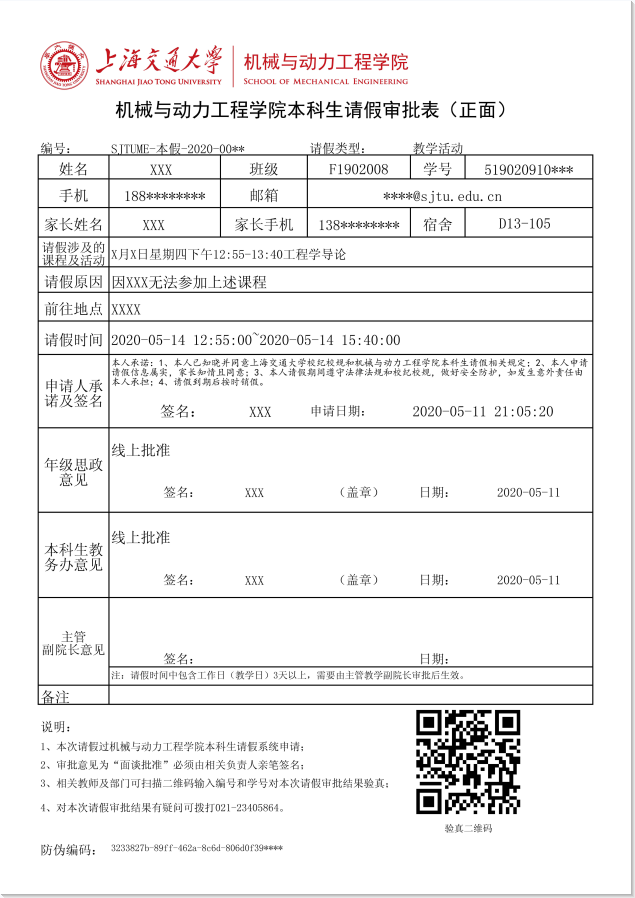 2、请假申请人所提供的请假信息必须属实,家长知情且同意。