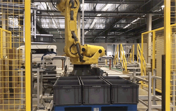 此次参观内容丰富,包含实验室的多个主要场所。带领同学们参观的主要领导是来自安吉智能技术中心的资深技术专家马博士。首先,同学们参观了机器人混合码垛系统。目前,很多项目都已经在使用码垛机器人,此项技术可以将货物快速码垛,机器人可以通过精细的操作来将物料箱按照设想的位置布置好,从而完成对于人力来说极其复杂繁琐的搬运工作。